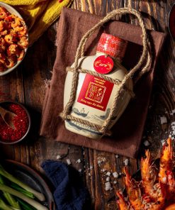 - Chai thủy tinh nhập khẩu và nhãn chính dấu mộc vuông vàng trên nền giấy đỏ, nhãn tròn phụ cột dây thừng cổ chai tinh tế, không những ngon mà còn đẹp mắt.