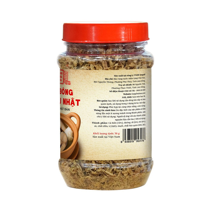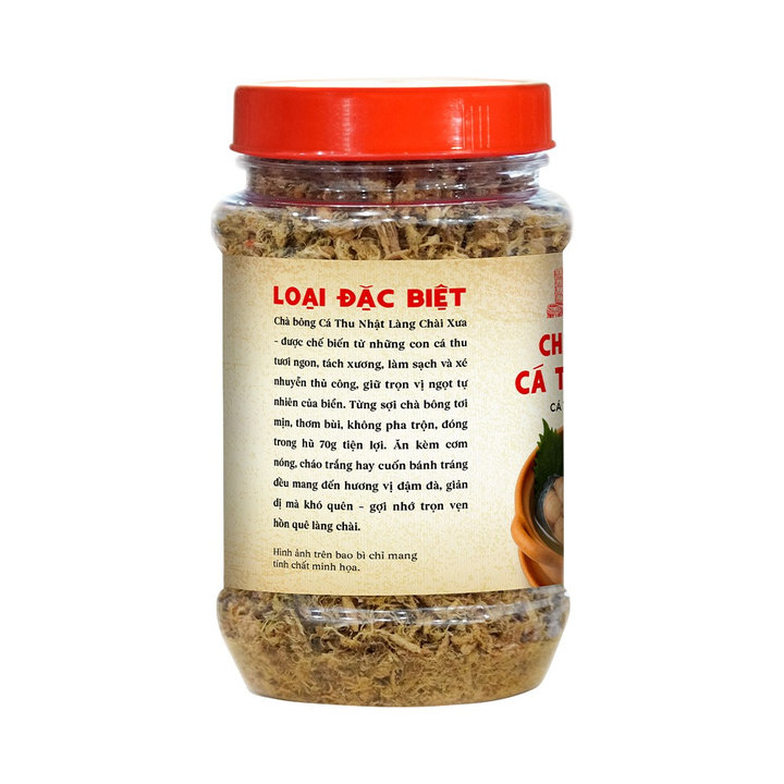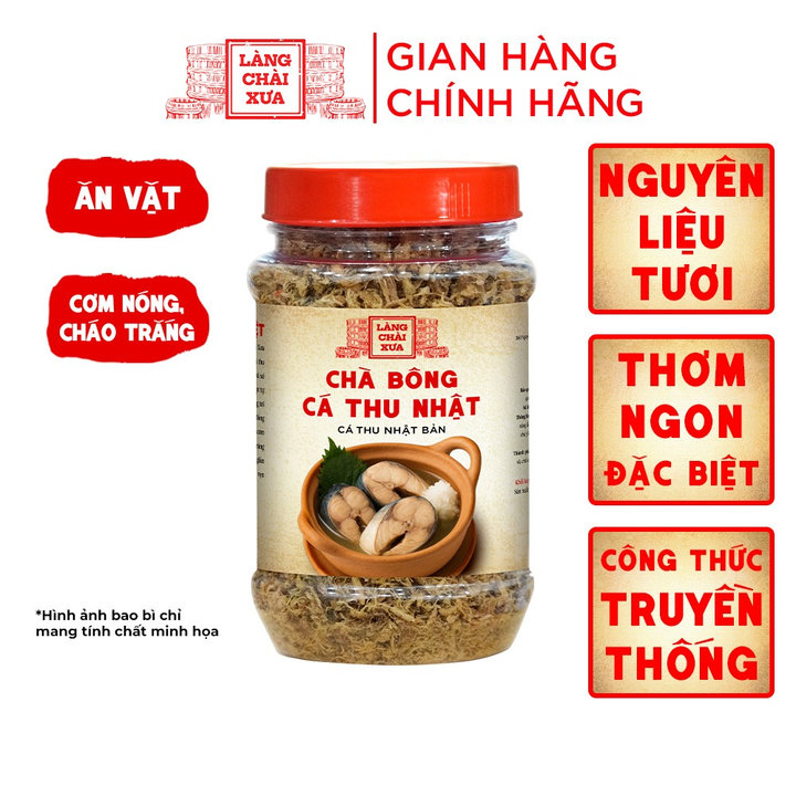 – Chà bông Cá Thu Nhật Làng Chài Xưa được chế biến từ những con cá thu tươi ngon, được tách xương, làm sạch, xé nhuyễn thủ công để giữ trọn vị ngọt tự nhiên của biển cả.
