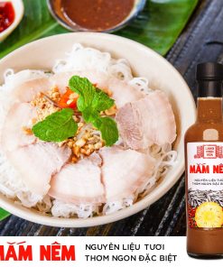 - Mắm nêm pha sẵn Làng Chài Xưa rất thơm ngon và khác biệt, được làm công phu bằng nguyên liệu tươi. Mắm nêm cá cơm ủ thùng gỗ, trái thơm tươi, chanh tươi, tỏi và ớt xiêm tươi hòa quyện nồng nàn giúp món ăn ngon hơn rất nhiều. Đặc biệt là bánh tráng cuốn tôm thịt hoặc bún thịt heo luộc.