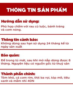 – NGUYÊN LIỆU CHÍNH: TÔM KHÔ, CÁ CƠM RIM, THỊT BA RỌI, TỐP MỠ VÀ MẮM NHỈ 40N ĐẠM