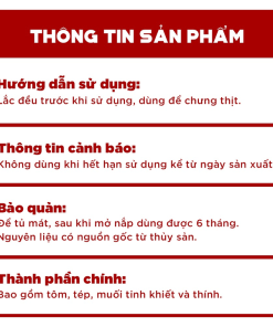 – HƯỚNG DẪN SỬ DỤNG : Lắc đều trước khi sử dụng, dùng trực tiếp ngon nhất khi ăn với bún đậu và chấm với đậu hủ, dồi trường, thịt luộc.