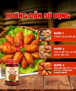 HƯỚNG DẪN SỬ DỤNG: Chiên vàng thịt gà, vớt ra để ráo và bỏ phần dầu dư. Cho sốt vào đảo cùng thịt gà với lửa nhỏ trong 2 phút, gà thấm vị là dùng được. 1 hủ sốt 260g dùng cho 1,2kg thịt gà. Phù hợp: gà chiên, cánh gà, sụn gà và hải sản.
