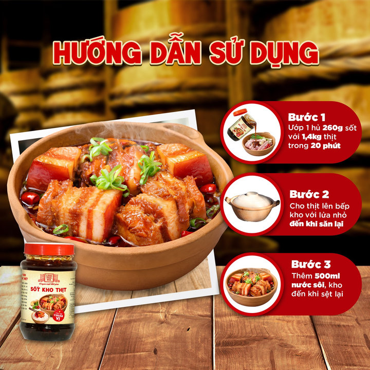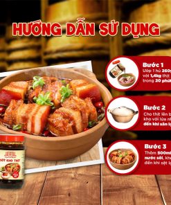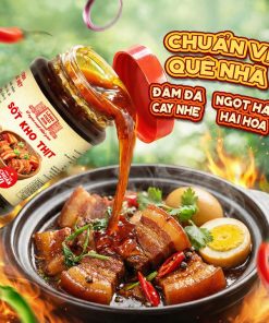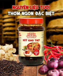 – Sốt kho thịt – làm từ nước mắm nhỉ nguyên chất kết hợp tỏi, ớt tươi và gia vị truyền thống, cho vị đậm đà, cay nhẹ, ngọt hậu hài hòa.