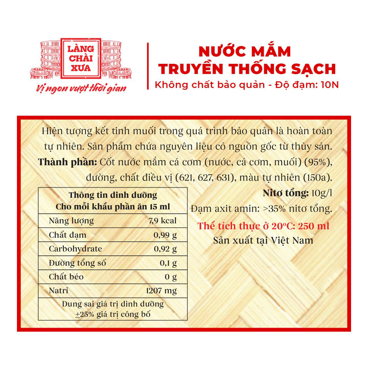 – Nước mắm chuẩn truyền thống nên khi để lâu nước mắm sẽ sậm màu và có thể có kết tinh muối dưới đáy chai, không ảnh hưởng đến an toàn vệ sinh thực phẩm.