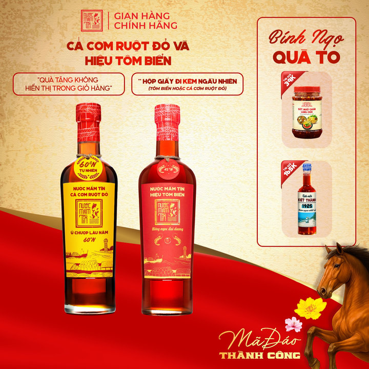 – Nước mắm cá cơm ruột đỏ 60N độ đạm được ủ chượp bằng cá cơm vàng ruột đỏ quý hiếm gần 36 tháng theo công thức 300 năm của bảo tàng nước mắm Làng Chài Xưa