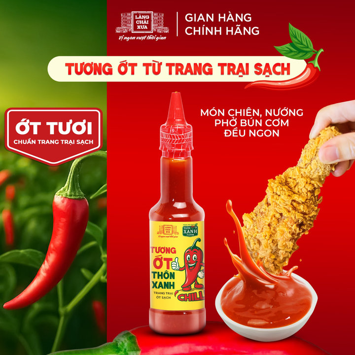 – TƯƠNG ỚT CHILLI LÀNG CHÀI XƯA NGUYÊN LIỆU TƯƠI THƠM NGON ĐẶC BIỆT – ỚT SẠCH TỪ THÔN XANH FARM